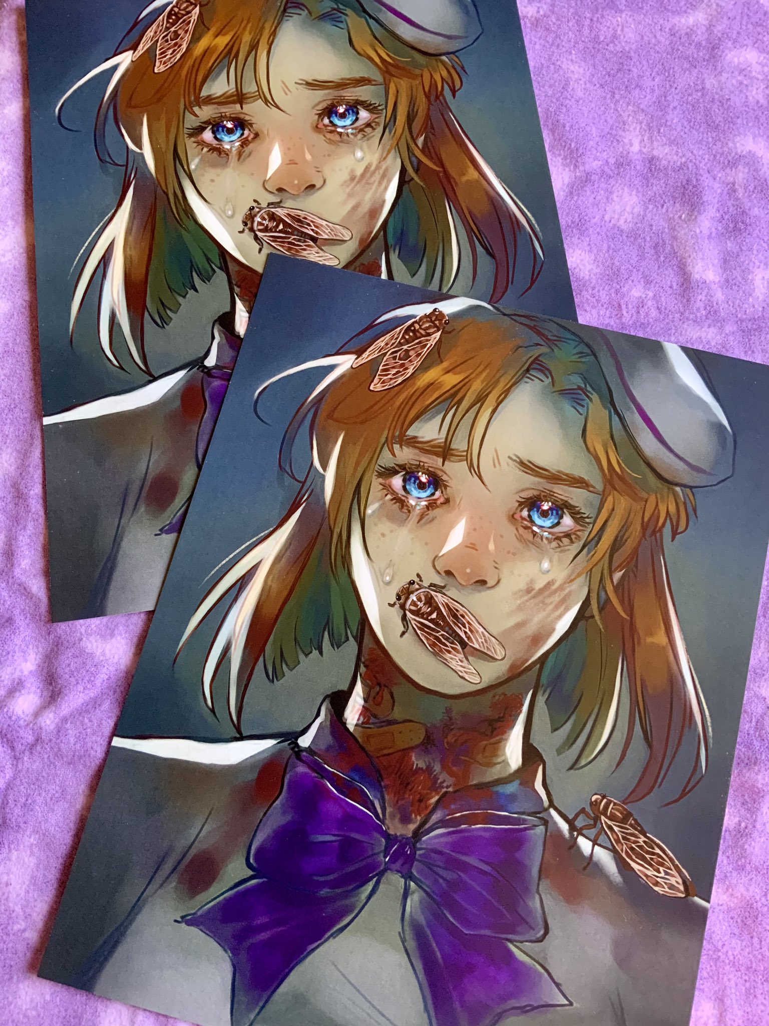 Print of Rena Ryuugu from the visual novel Higurashi no naku koro ni, inspired by her character arc in Tsumihoroboshi.