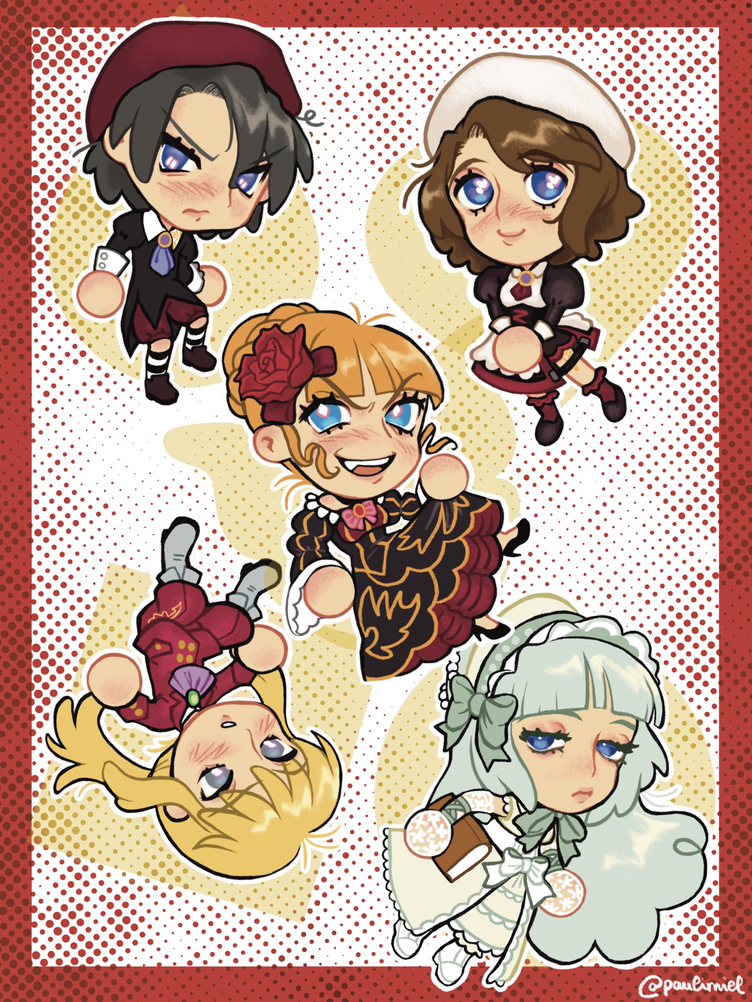 10inch long charm composed of 5 small 1.5inch characters linked together: Clair Vaux Bernardus, Beatrice, Shannon, Kanon, and Lion Ushiromiya from the visual novel Umineko no naku koro ni. The last charm is a golden keyring with three keys.