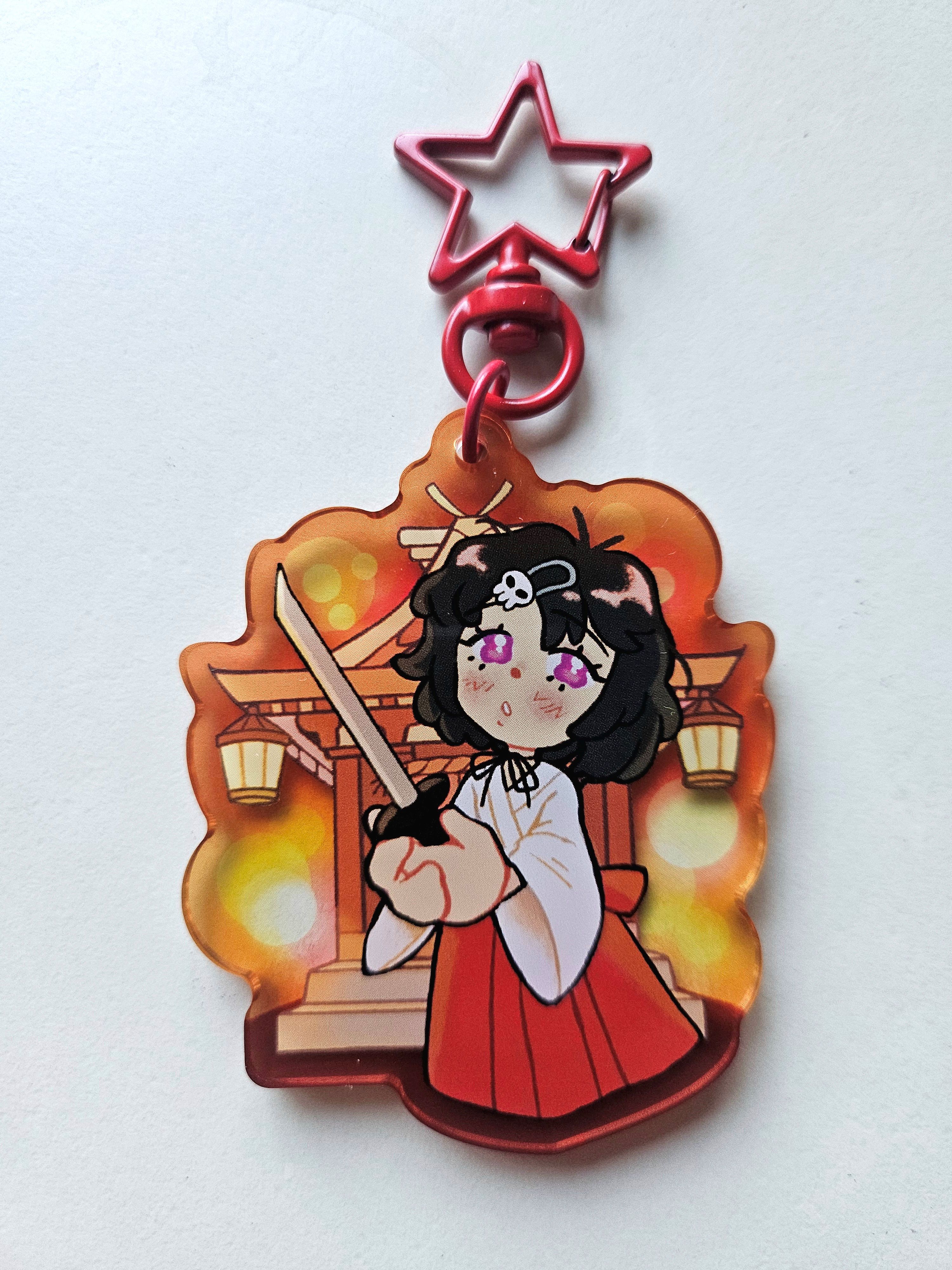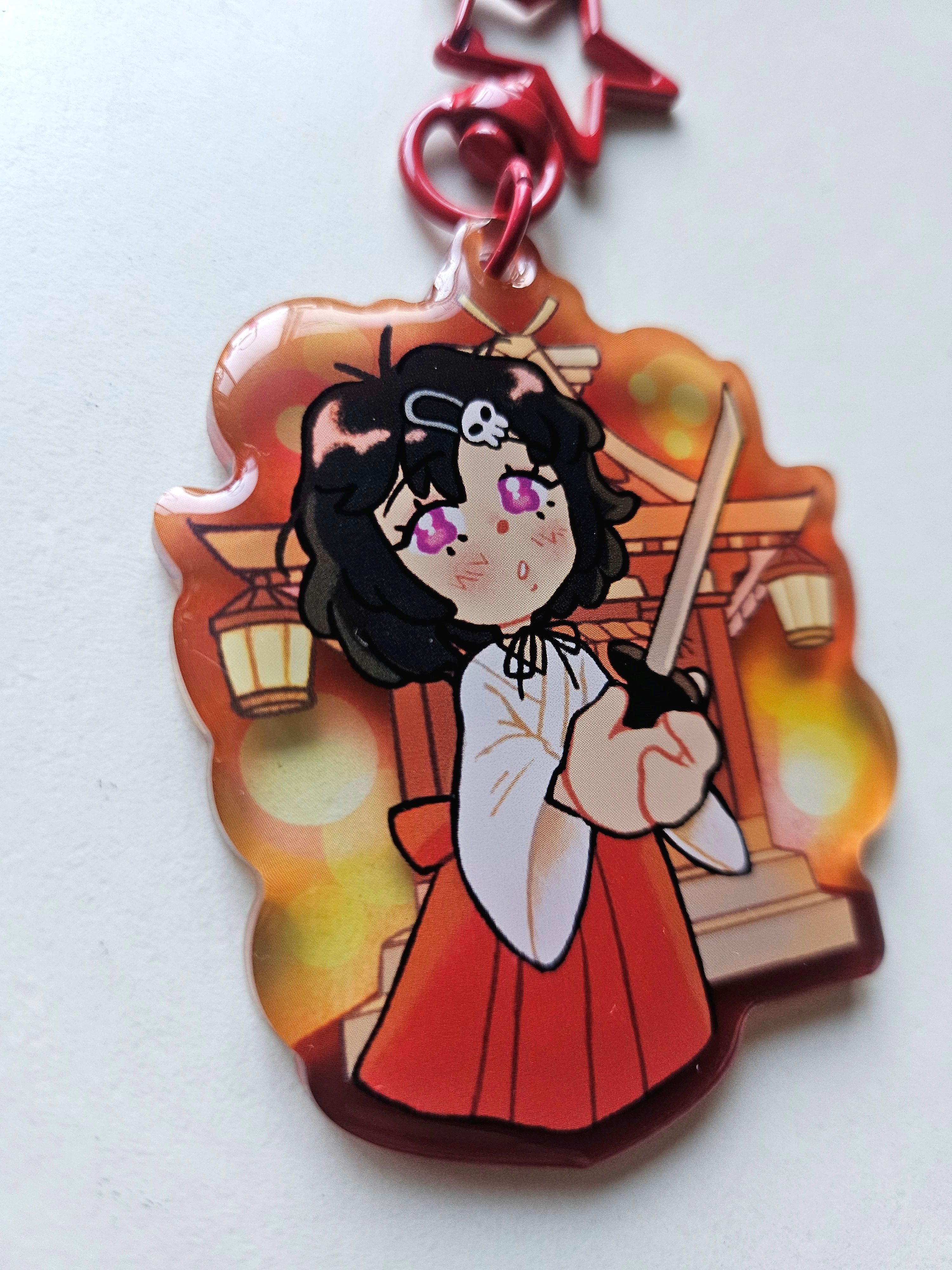 2.5 inch acrylic charm keychain featuring the character Urushibara Luka from Steins;Gate. Watch out for her legendary Seishin Zanma swordsmanship with the infamous Demon Sword Samidare - the sight will be burned into your soul (because it's so cute!)
