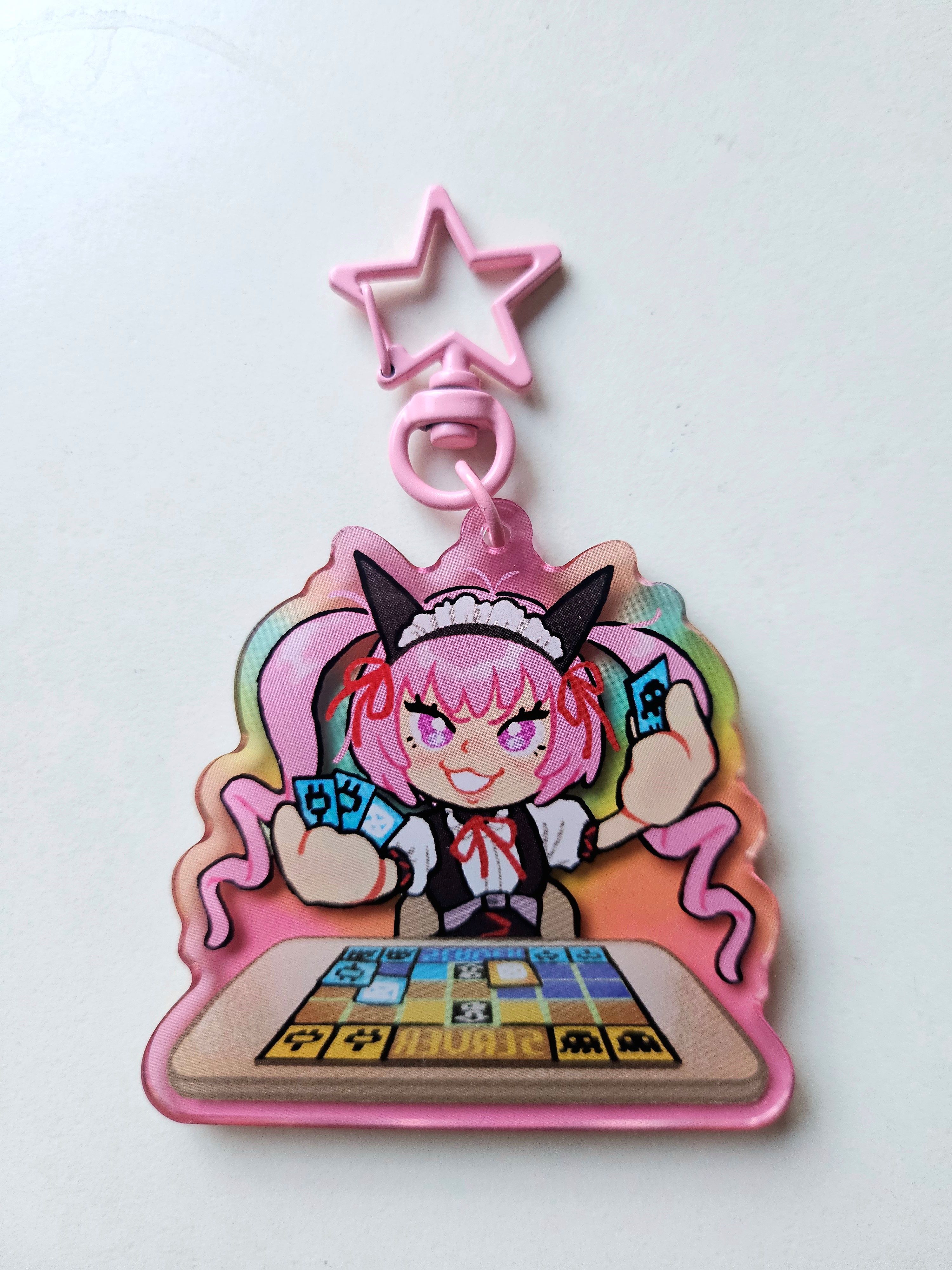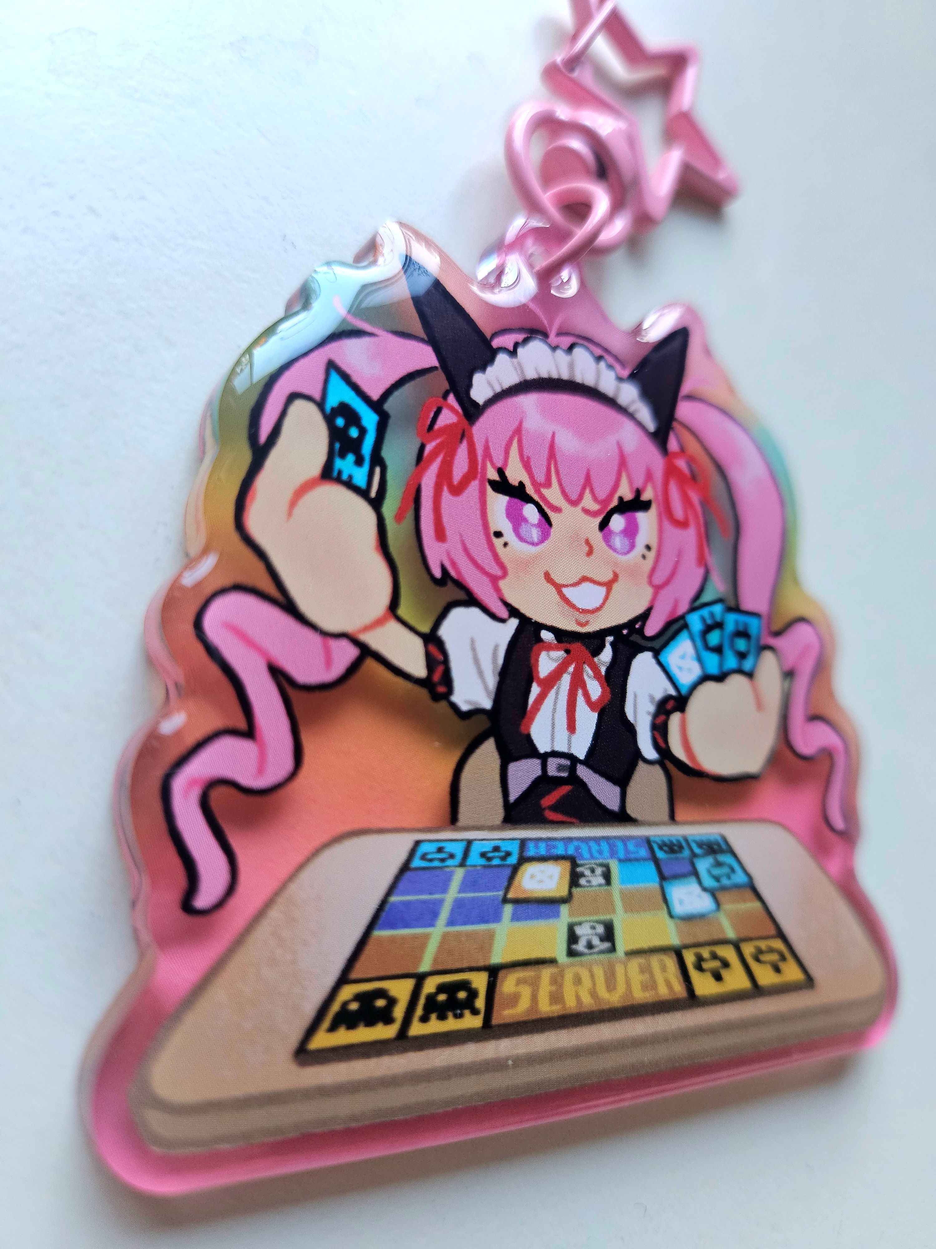 2.5 inch acrylic charm keychain featuring the character Faris NyanNyan from Steins;Gate. Welcome master-nya! You will learn the art of Rai-Net war or perish trying nya!